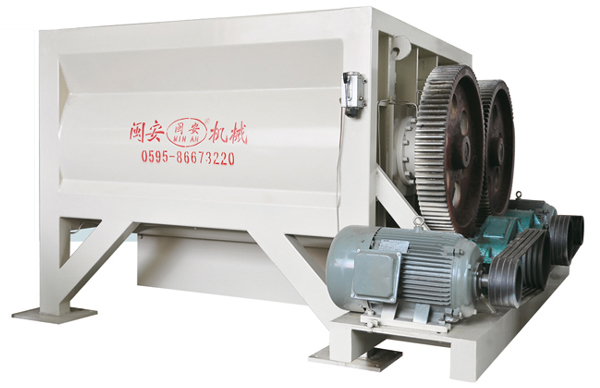该机为双轴高速搅拌机,高速双轴旋转叶片能够在短时间内将物料完全混合好。筒体内包不锈钢(1.2厘米)能够防止物料腐蚀筒壁,以达到使用寿命之长久。
